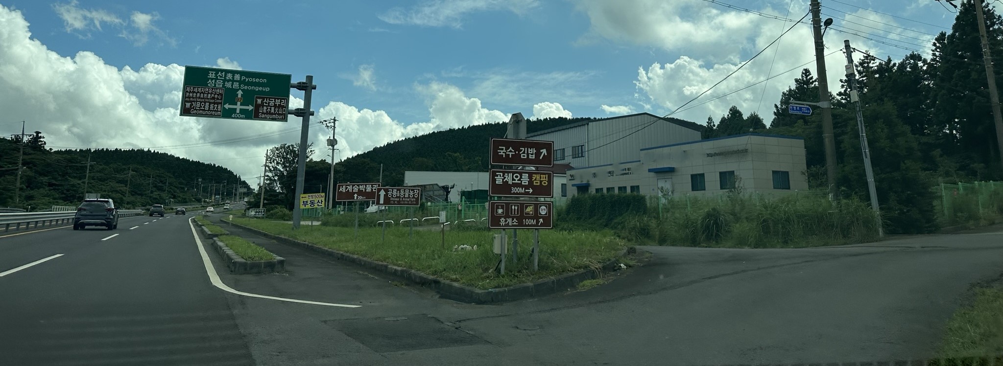 제주시에서 출발하여 번영로 표선방향으로 가다보면 오른쪽으로 골체오름 캠핑장 표지판이 보인다.