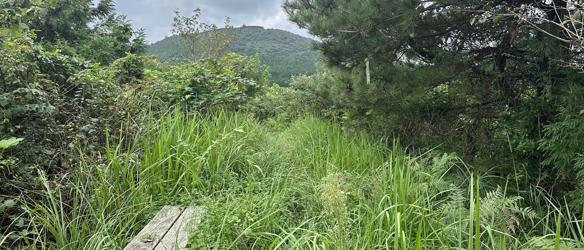 골체오름 정상 모습이다. 여름동안 방문객이 없어 산책로 휴식의자에 앉을 수 없을 정도로 풀이 높이 자라있다.