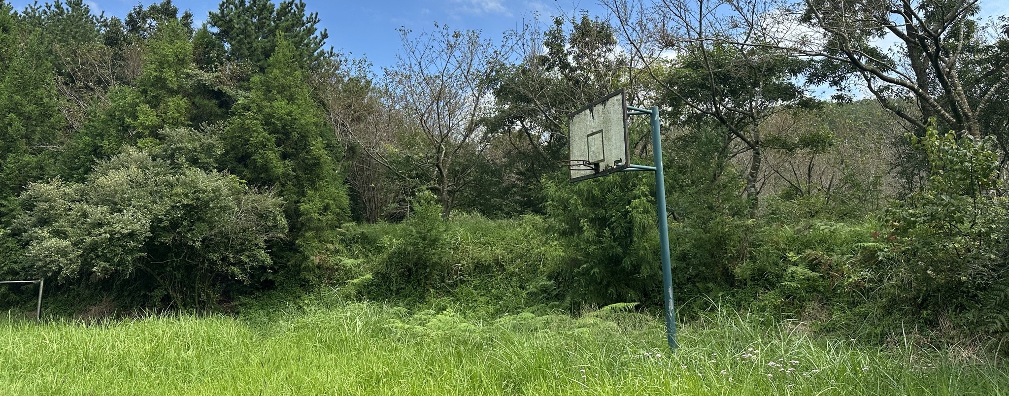골체오름에서 내려오면 사용하지 않는 농구대와 철봉 등 운동기구가 보인다.녹슨 운동기구와 주변 잡초가 많이 자라있는 모습이 오랫동안 관리를 안한것처럼 보인다.골체오름은 평소에는 방문객이 많은 곳은 아니지만 4월이 되면 벚꽃 명소로 바뀌어 연인과 함께 찾아오는 관광 명소이다.