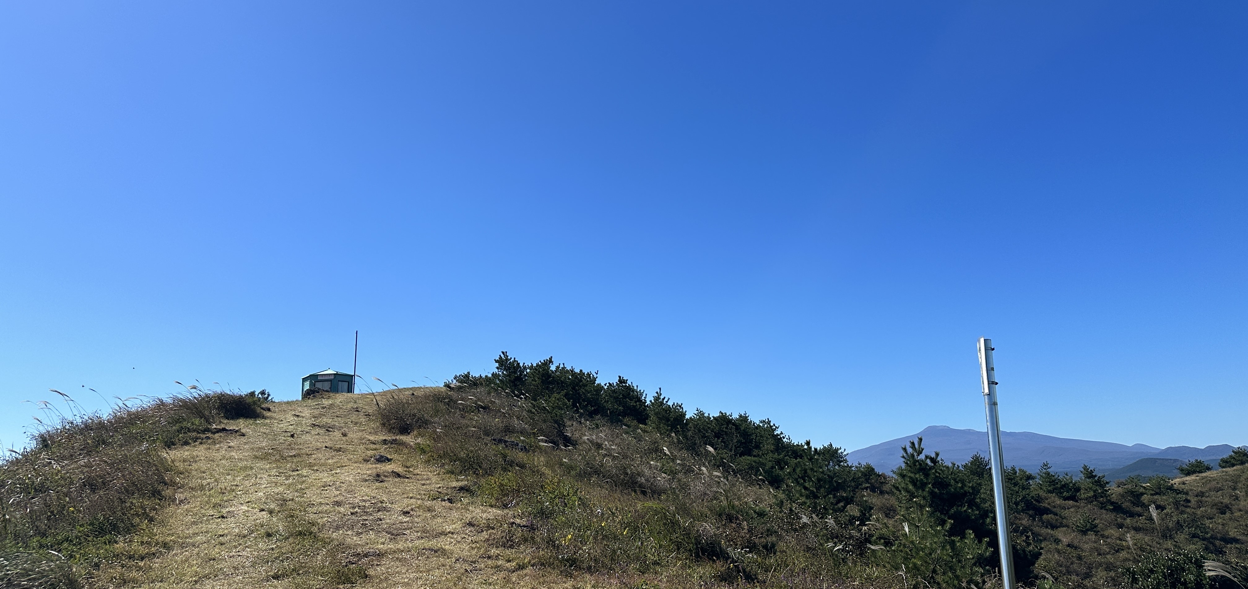 높은오름 정상.산불감시초소가 멀리 언덕 위에 보인다.