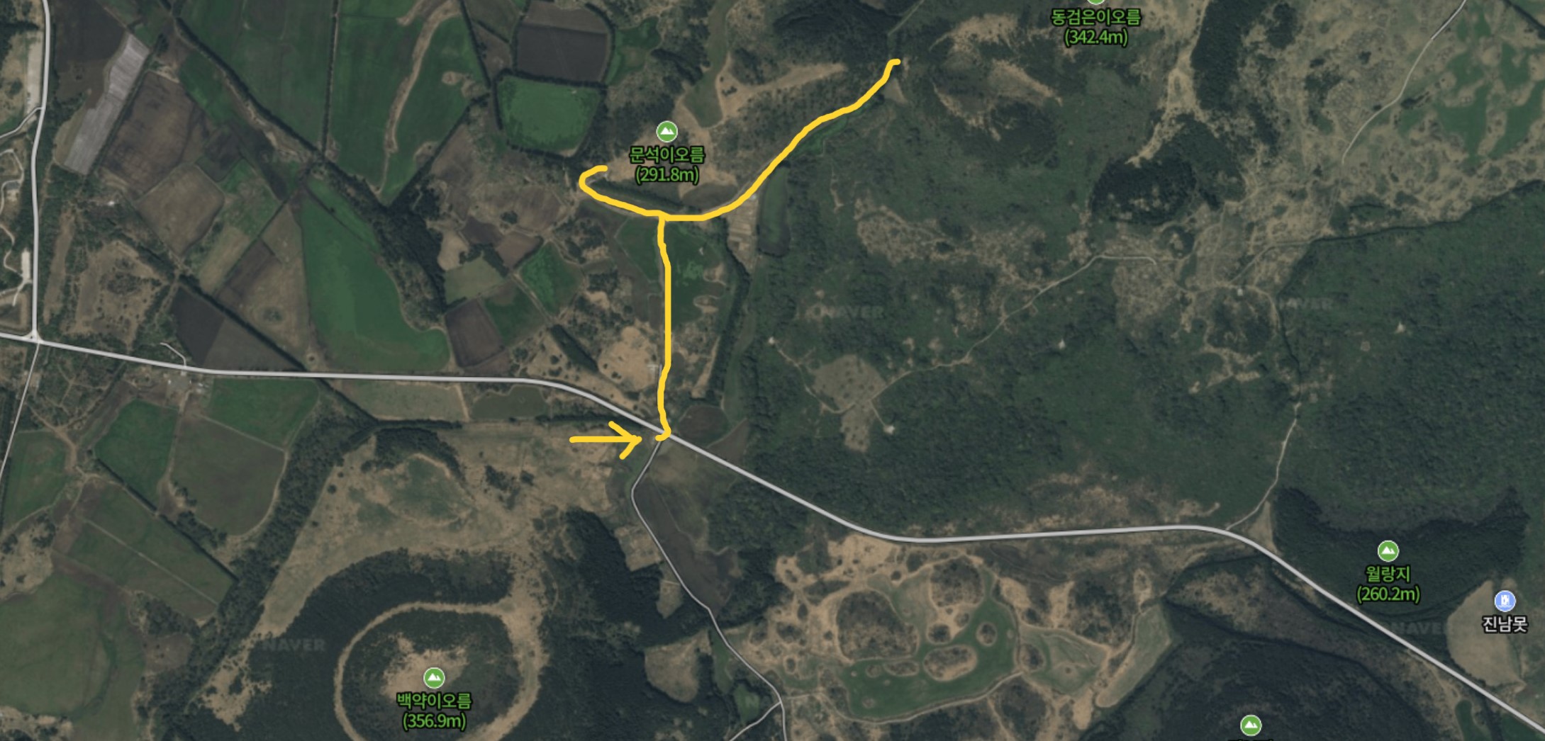 동검은이오름으로 가는 길은 좁고 주차하기 힘드니 백약이 오름 주차장에 주차를 하고 걸어가면 된다.